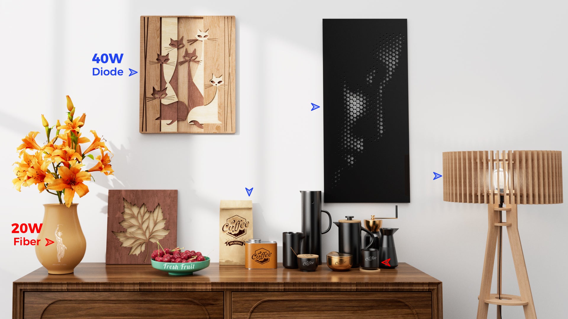 Angetrieben von einem 20W-Faser- und einem 40W-Diodenlaser ermöglicht der A9 Ultra Dual die nahtlose Verarbeitung von über 350 Materialien. Gepaart mit einem ultragroßen Arbeitsbereich eröffnet er eine grenzenlose kreative Landschaft und ermöglicht jedem Projekt, die Grenzen der Vorstellungskraft zu überschreiten.